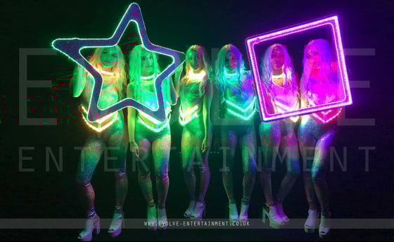 We have amazing LED entertainment that works really well in this package, such as our Visual DJ, who can control custom lights, graphics and logos, all played live on stage. Here at Evolve we are very well known for our LED Dancers who complement this act really well - we design all the costumes in house and have flown all over the world performing in them.